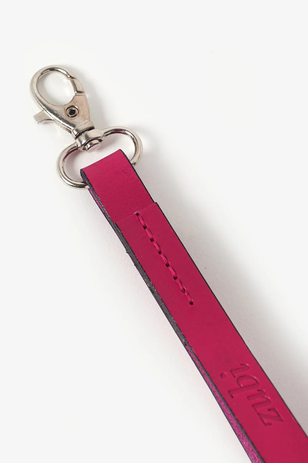 TIRADOR DE PIEL FUCSIA CON EL LOGO DE ZUBI, TERMINADO CON UN MOSQUETÓN DE ALUMINIO. AÑÁDELO A TU ZUBI Y LLÉVALO DE MANERA MÁS CÓMODA. TAMBIÉN PUEDES USARLO COMO LLAVERO.