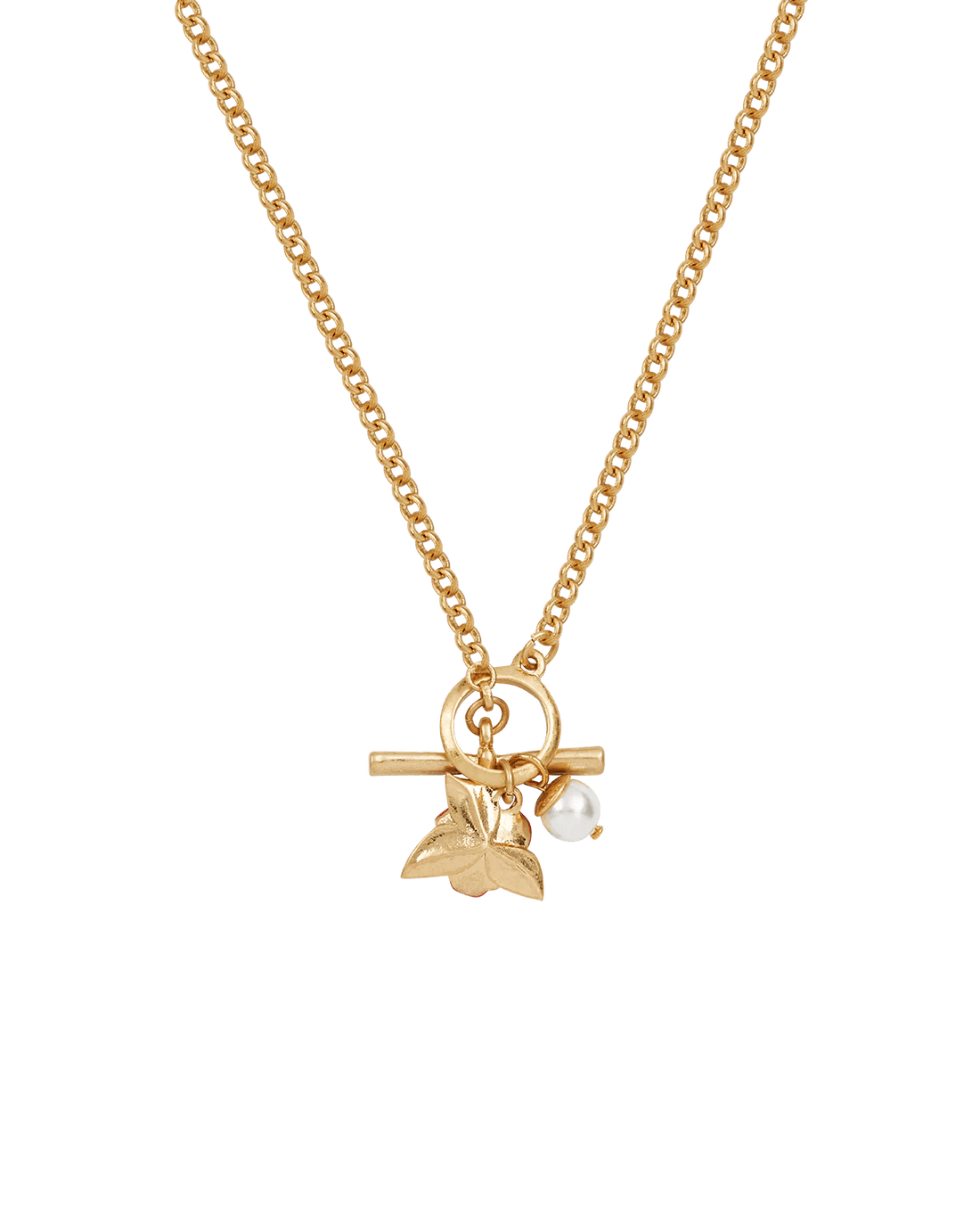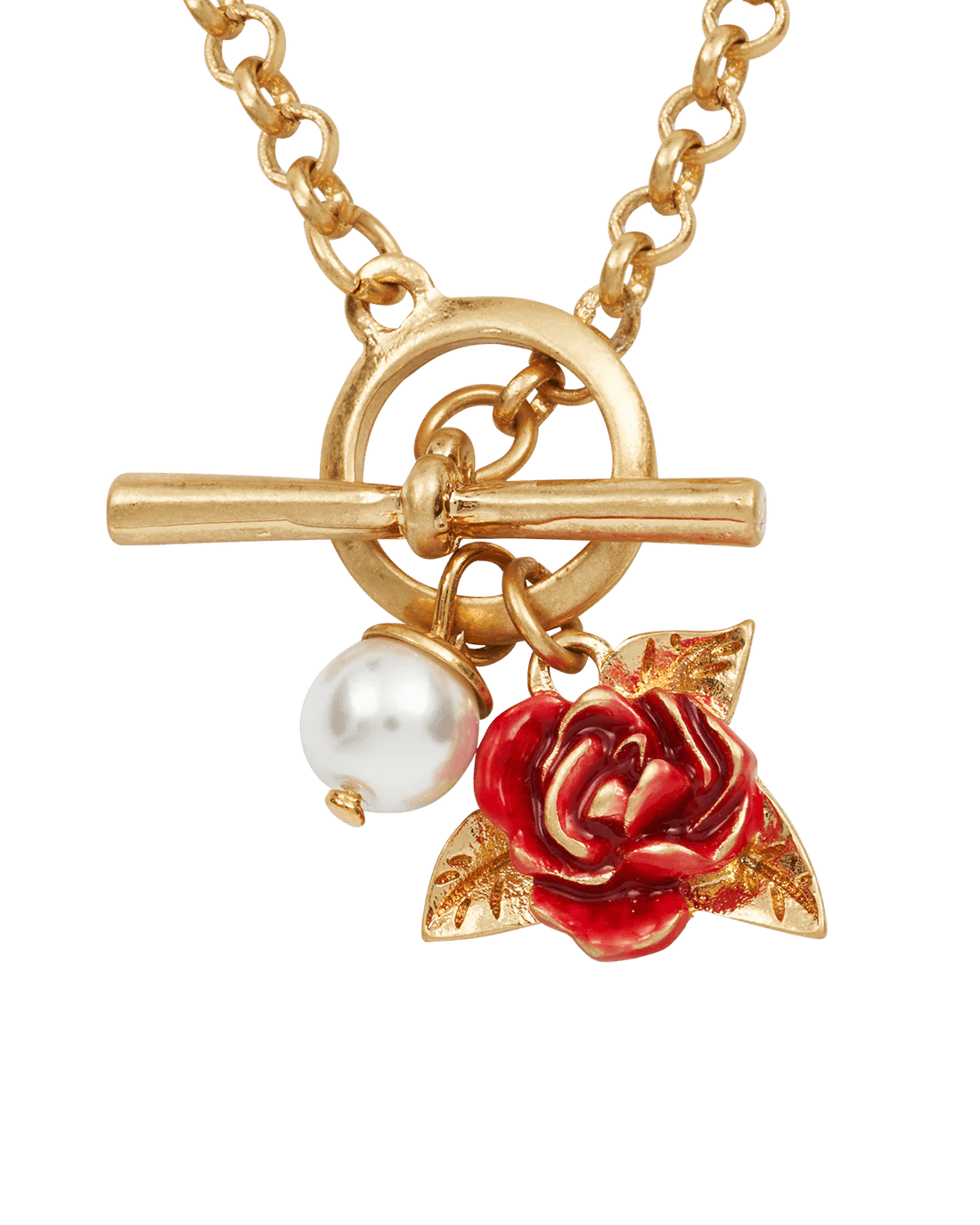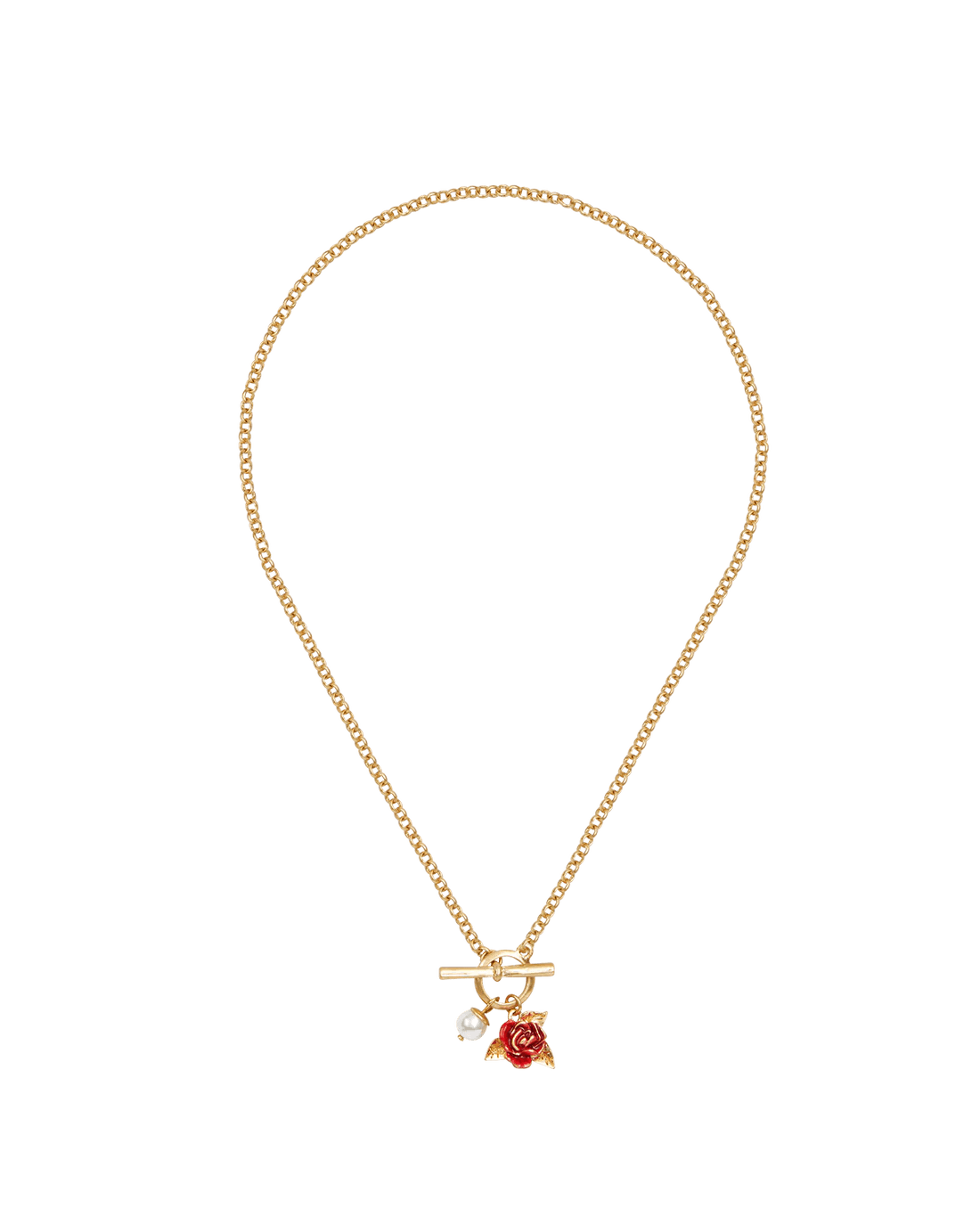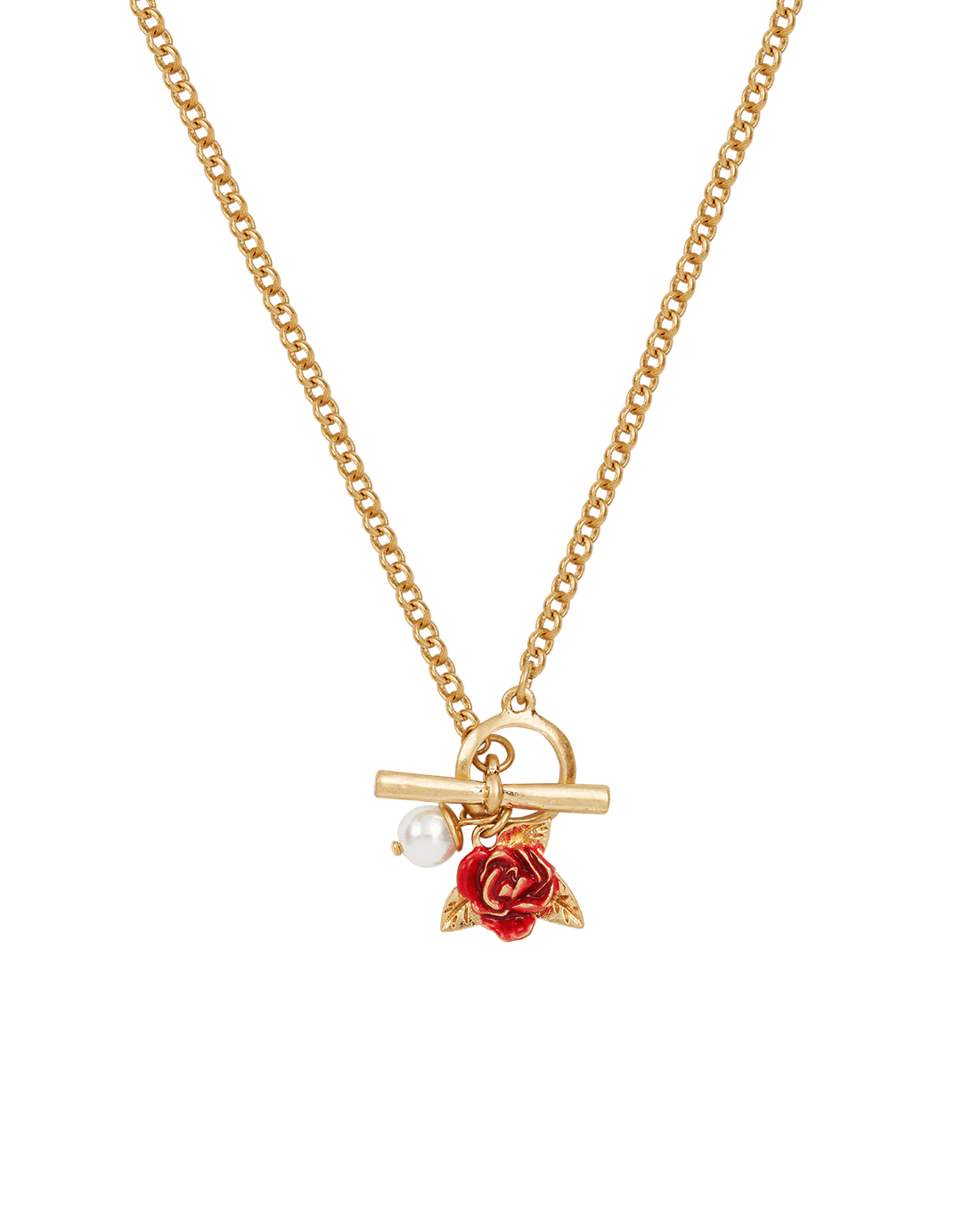 Arraigado en la resiliencia y la belleza, el Collar de perla y rosa inglesa con cierre toggle cuenta una historia de fuerza bajo la suavidad. Inspirado en la leyenda de una rosa que resiste la tormenta, captura la elegancia de un jardín inglés en flor. Con una rosa esmaltada en rojo esculpida y una delicada perla artificial, ambas colgando de un cierre toggle de estilo vintage, este collar es una pieza llamativa, romántica y sofisticada, con un toque se frivolidad.