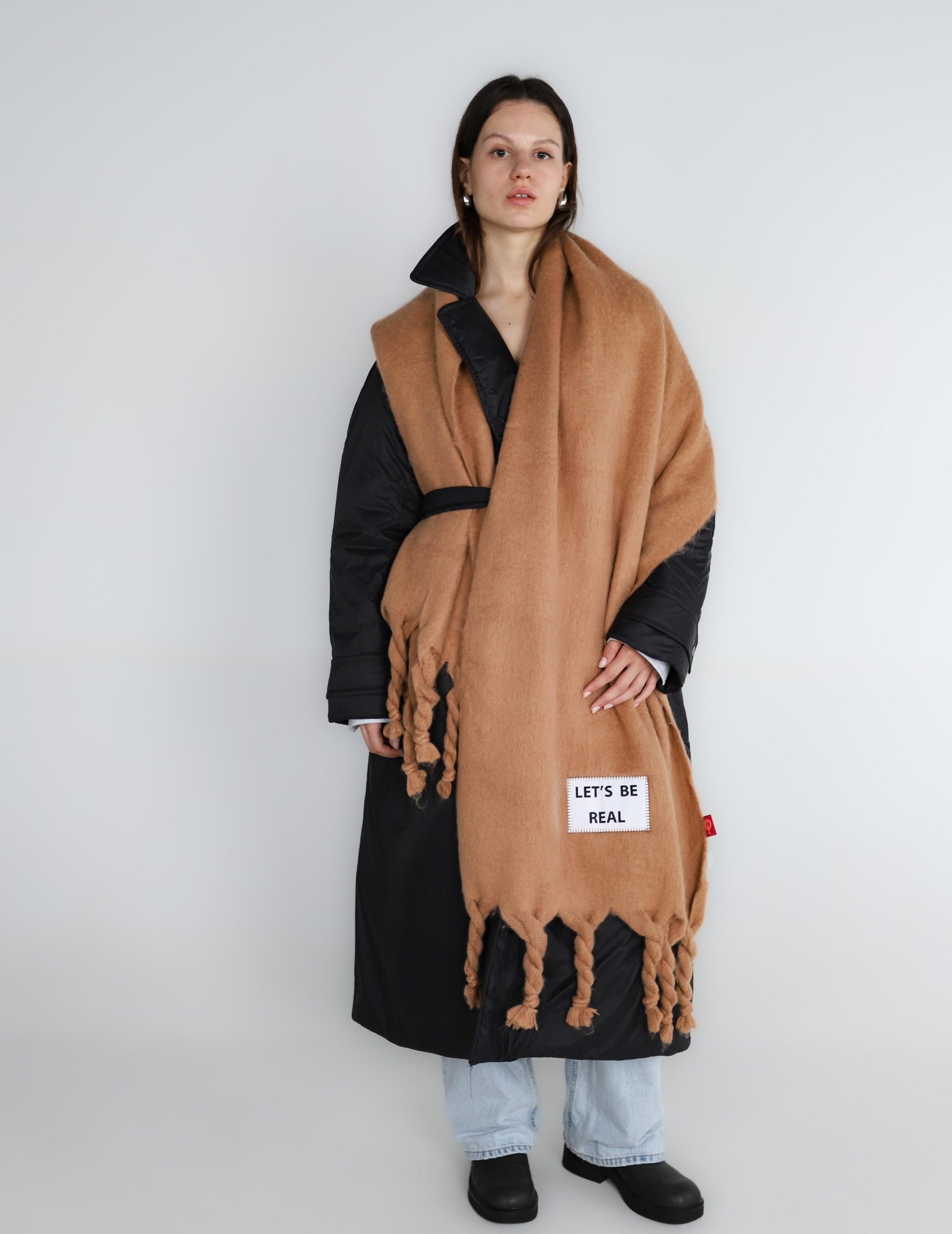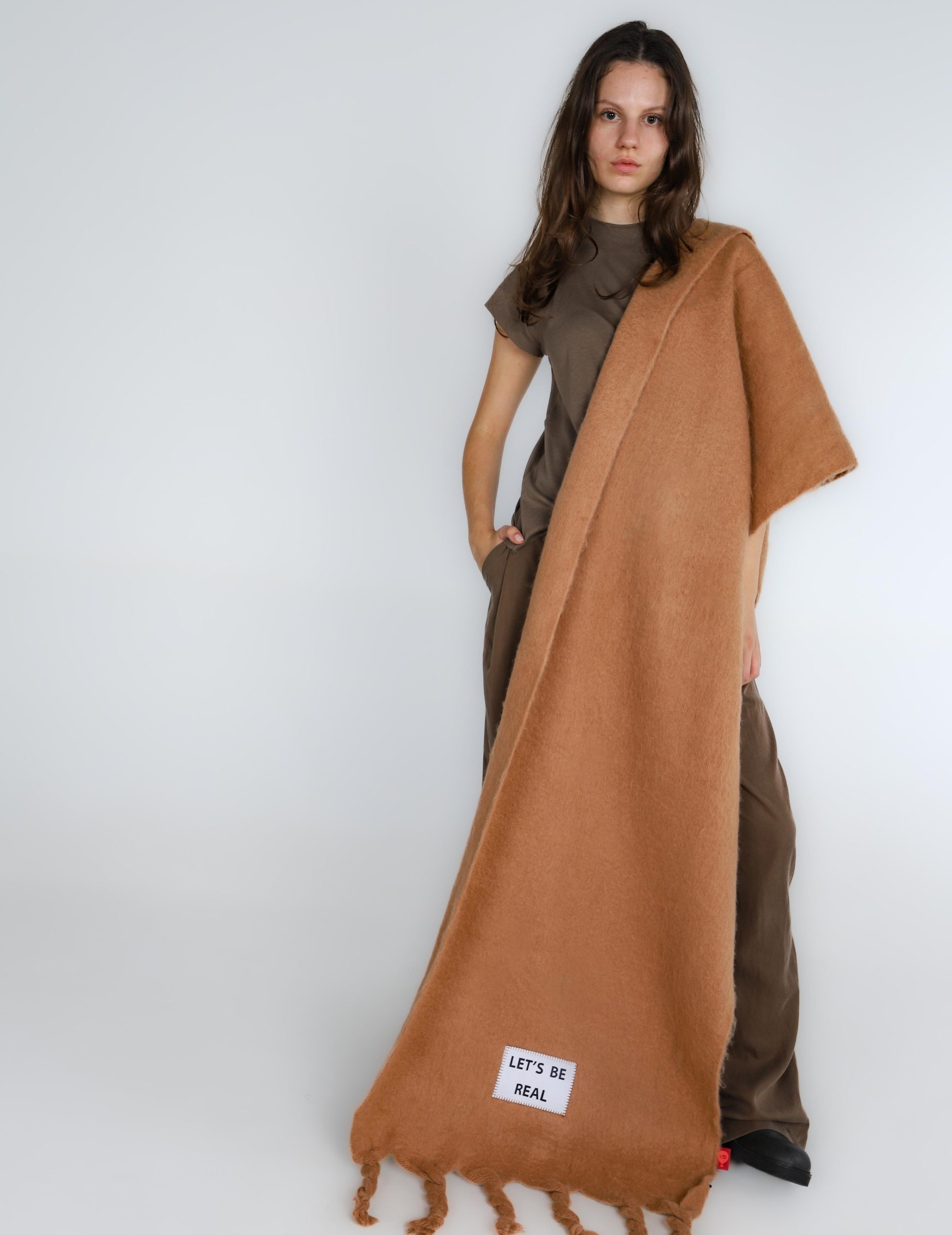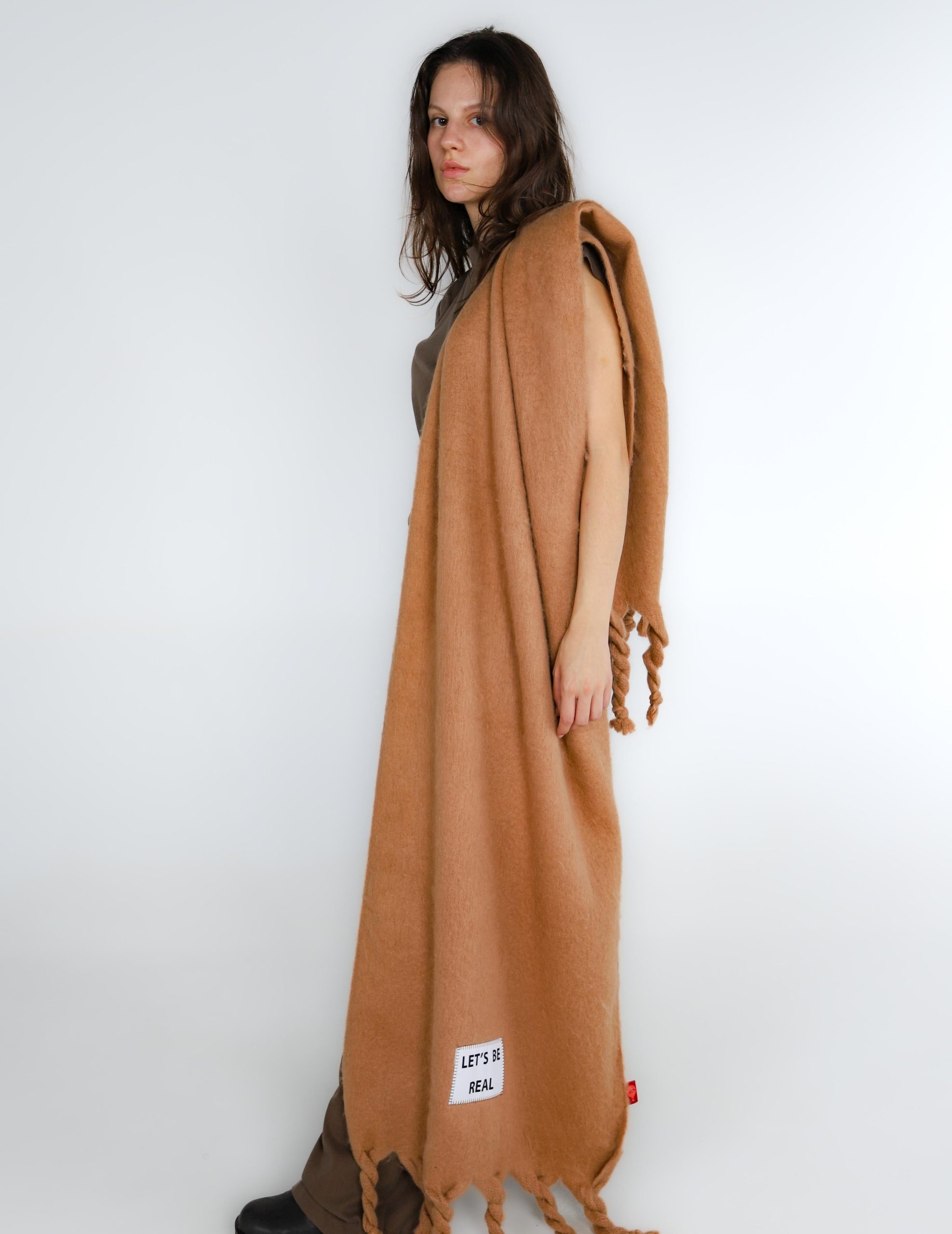 LA BUFANDA MÁS GRANDE DE TODA LA COLECCIÓN DE VERB TO DO. ES UNA BUFANDA PERO PODRÍA SER UNA MANTA DEBIDO A SU VOLUMINOSIDAD.