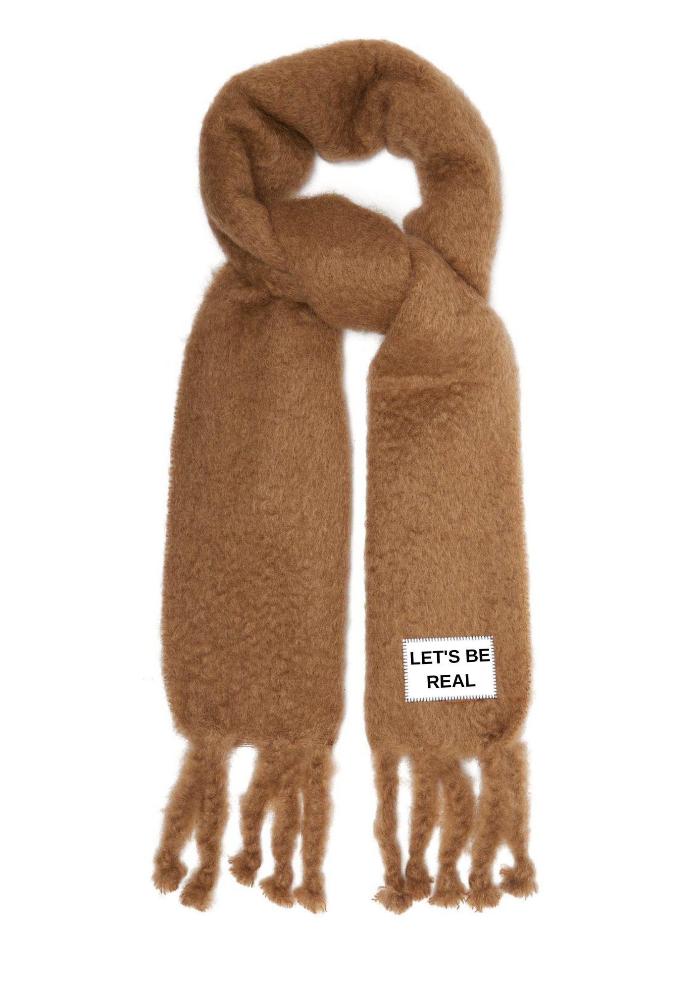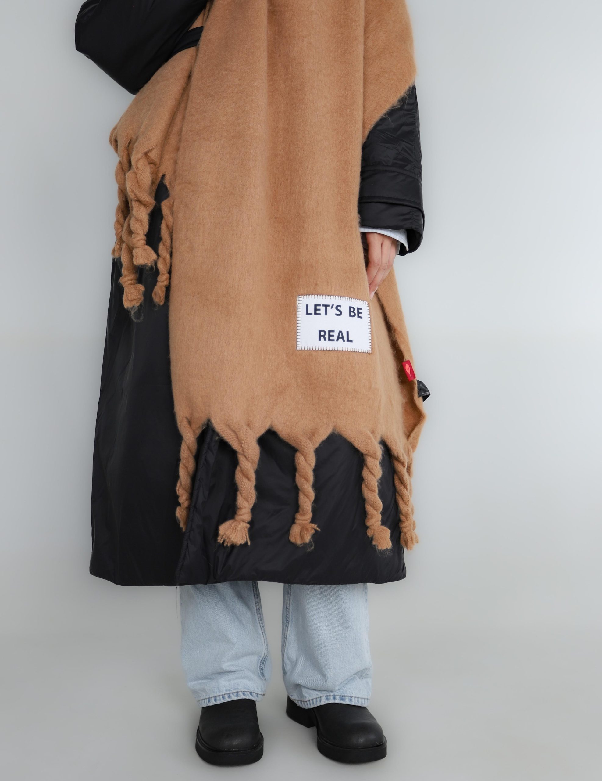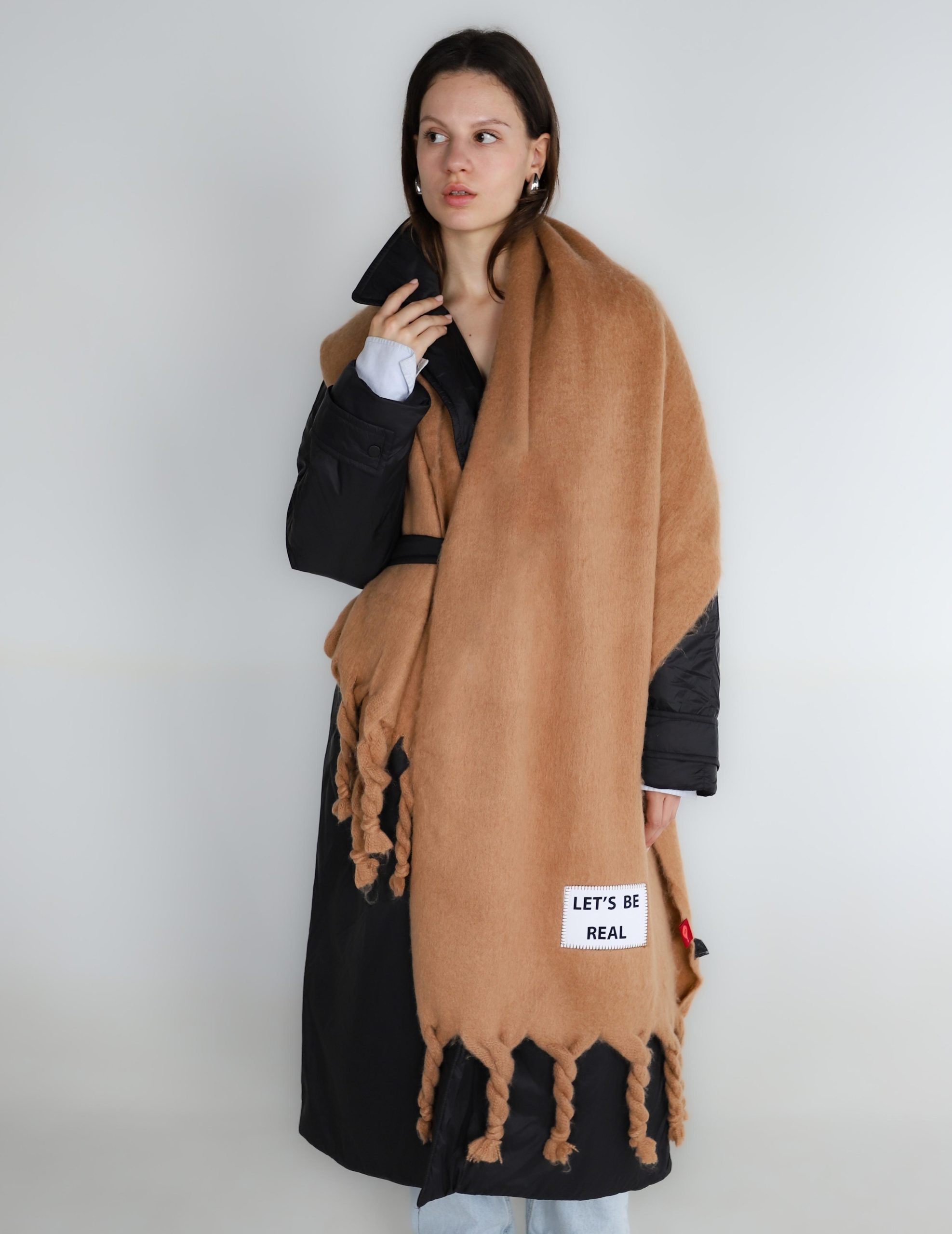 LA BUFANDA MÁS GRANDE DE TODA LA COLECCIÓN DE VERB TO DO. ES UNA BUFANDA PERO PODRÍA SER UNA MANTA DEBIDO A SU VOLUMINOSIDAD.