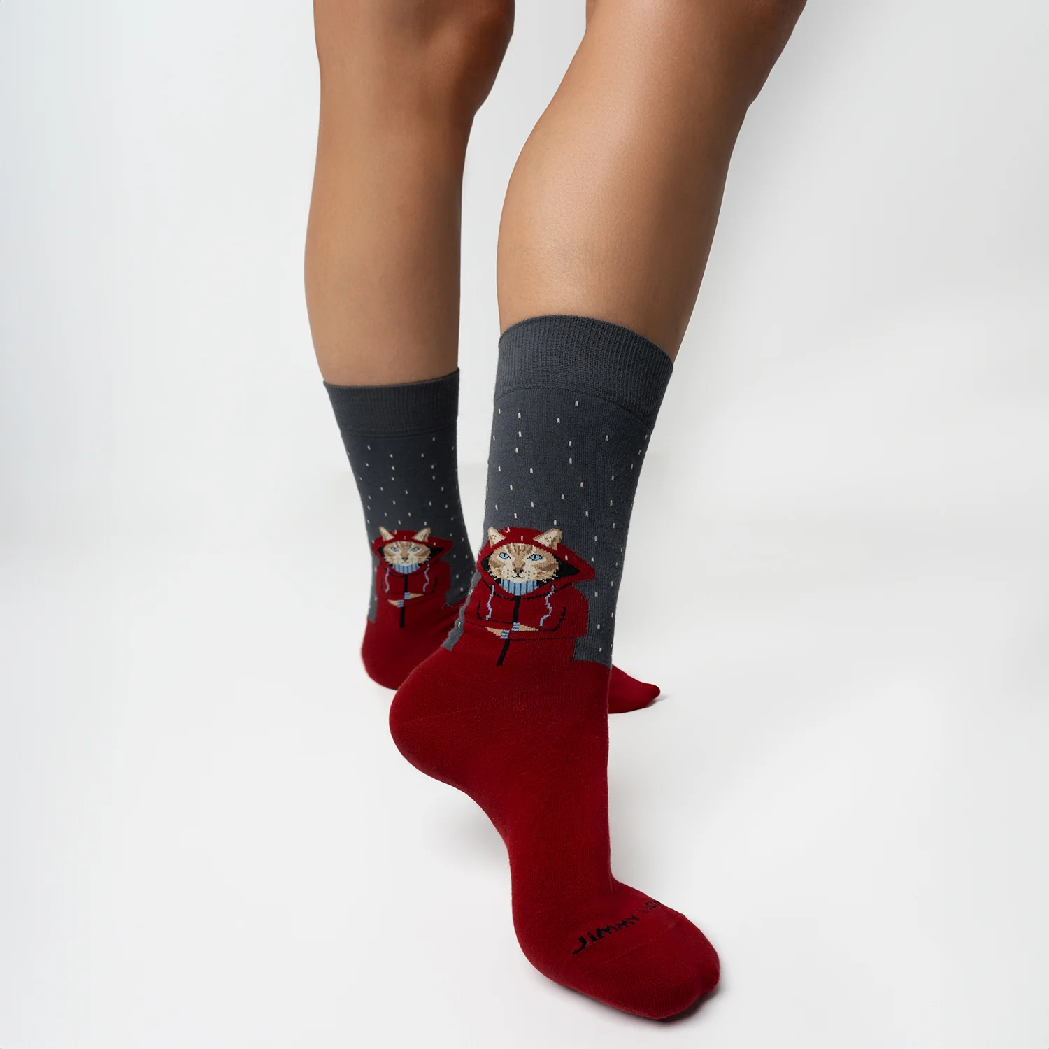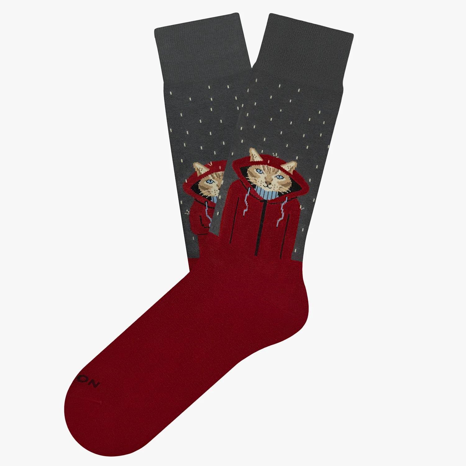 CALCETINES DE MEDIA CAÑA CON GATO ENCAPUCHADO DISFRUTANDO DE LA LLUVIA CON ESTAMPADO LISO.