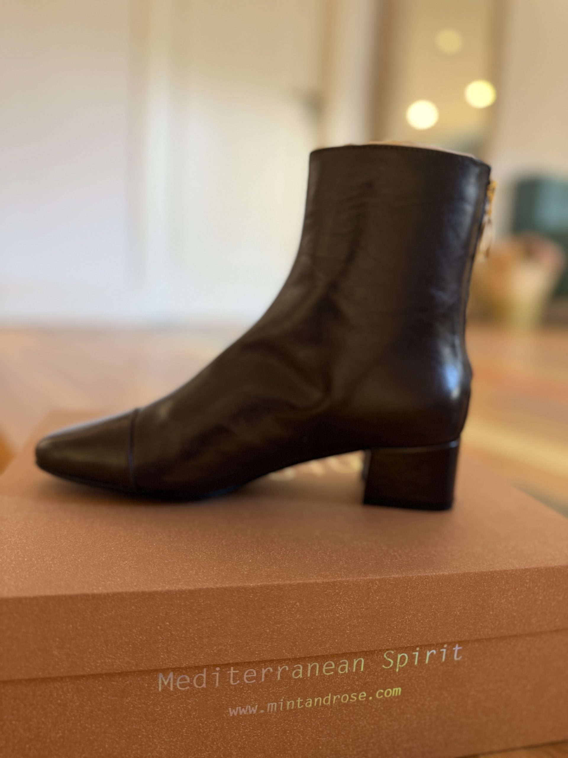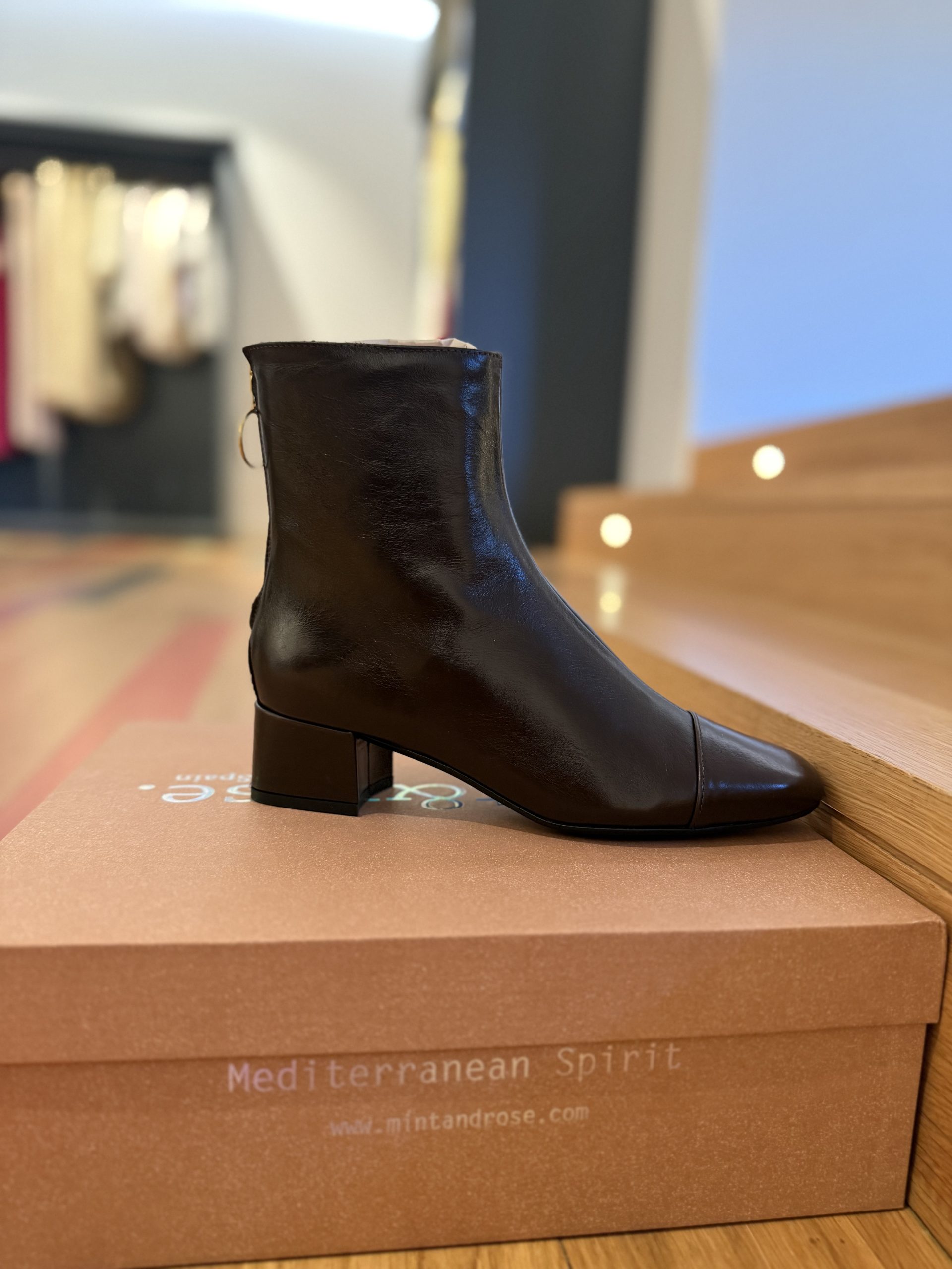 LOS BOTINES SOL SON UNA PIEZA ESENCIAL CON DISEÑO VERSÁTIL Y ATEMPORAL, ELABORADOS LOCALMENTE CON MATERIALES DE ALTA CALIDAD QUE PROMETEN PERDURAR EN EL TIEMPO. SU DISEÑO ES UN CLÁSICO PERO CON MULTITUD DE PEQUEÑOS DETALLES QUE LO CONVIERTEN EN EL BOTÍN PERFECTO. PUNTERA SUTILMENTE CUADRADA, CAÑA QUE SE AFINA A LA ALTURA DEL TOBILLO, CREMALLERA DORADA CON TIRADOR DE DISEÑO EN LA PARTE TRASERA Y TACÓN DE 4,5 CM EN BLOQUE Y FORMA DE U. PLANTILLA CLOUD ACOLCHADA PARA LA MÁXIMA COMODIDAD.
