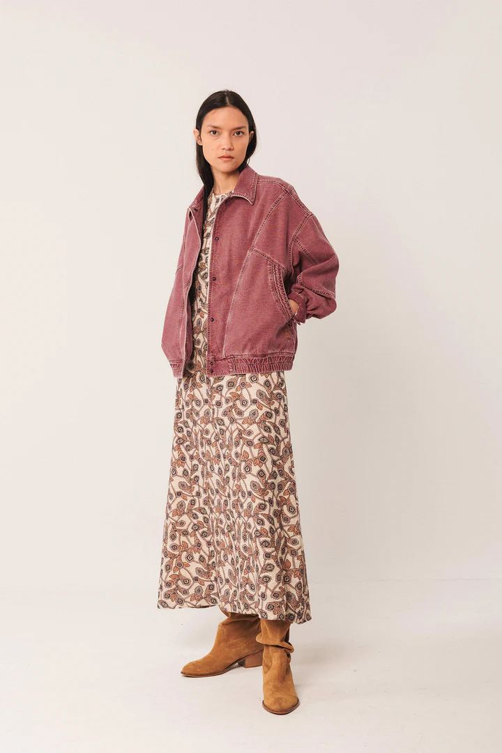 Una cazadora de aspecto gastado por su lavado y un tejido de sarga de algodón que nos encanta. Tiene cuello camisero con cierre frontal de snaps y cintura engomada para darle aspecto vintage. Diseñado con un corte cuadrado, ancho y corto.
