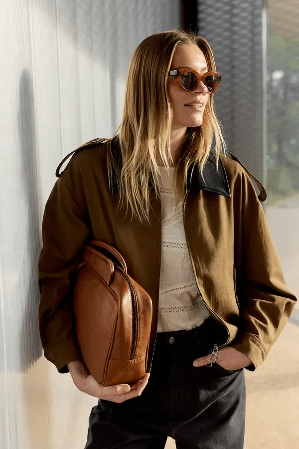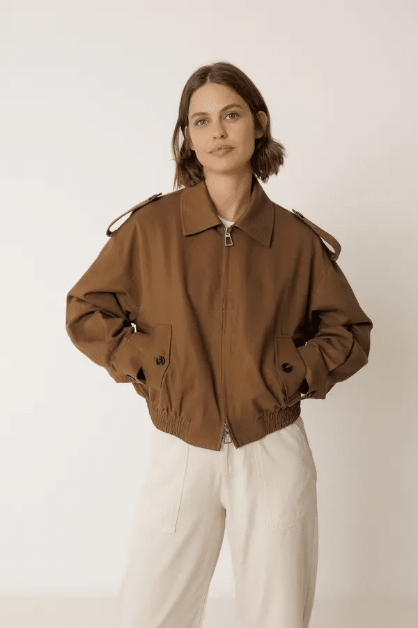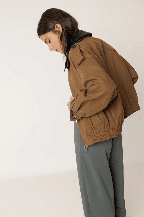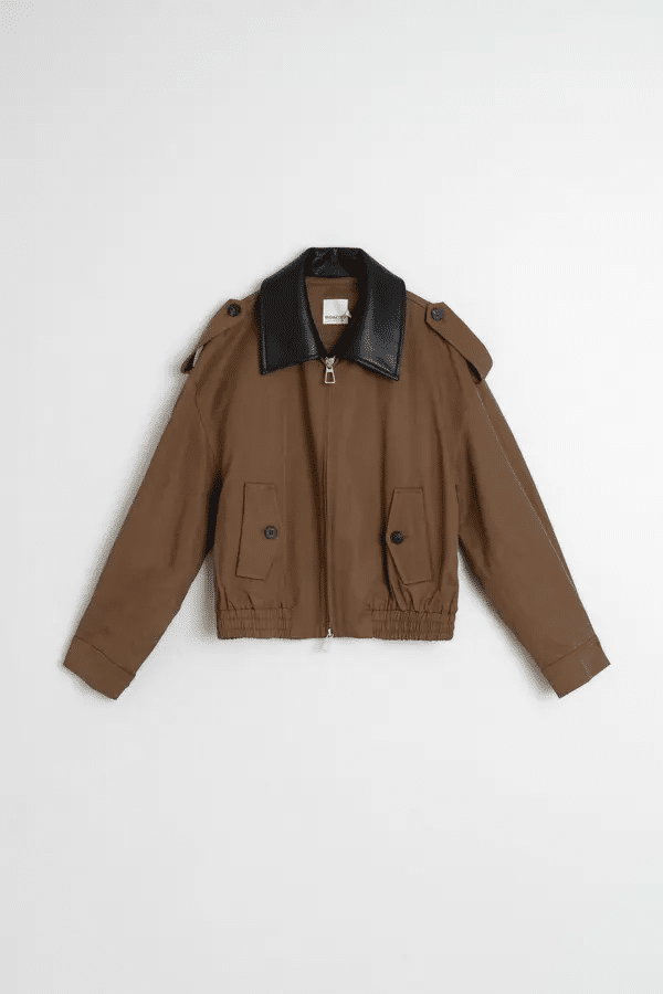 Esta cazadora de algodón y lyocell te solucionará el look en esos días frescos de verano. De hombro caído, manga larga y cuello desmontable imitación piel. Tiene un volumen tipo bomber gracias a su ajuste en el bajo. Cierre de cremallera frontal. Bolsillos de solapa con botón. Cinturilla engomada.
