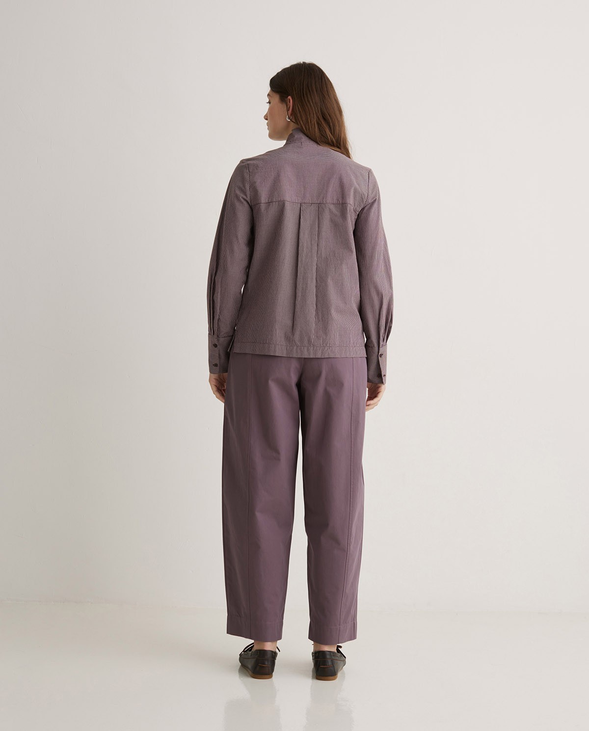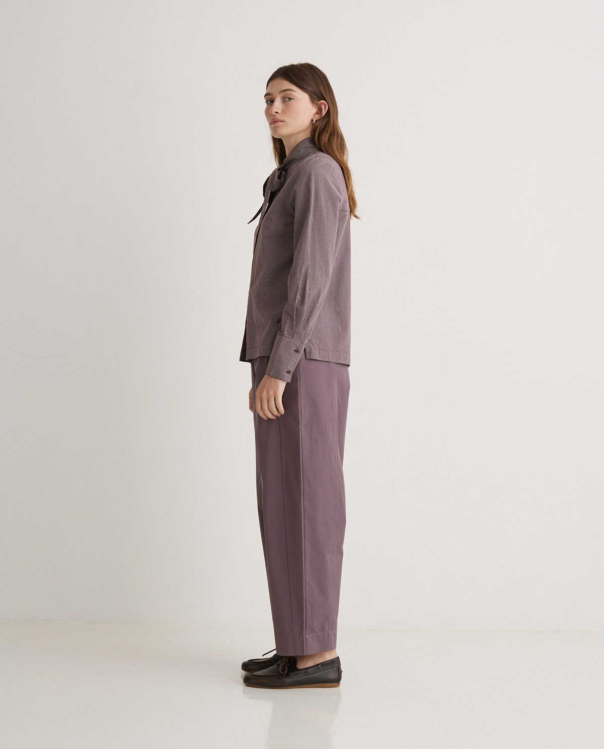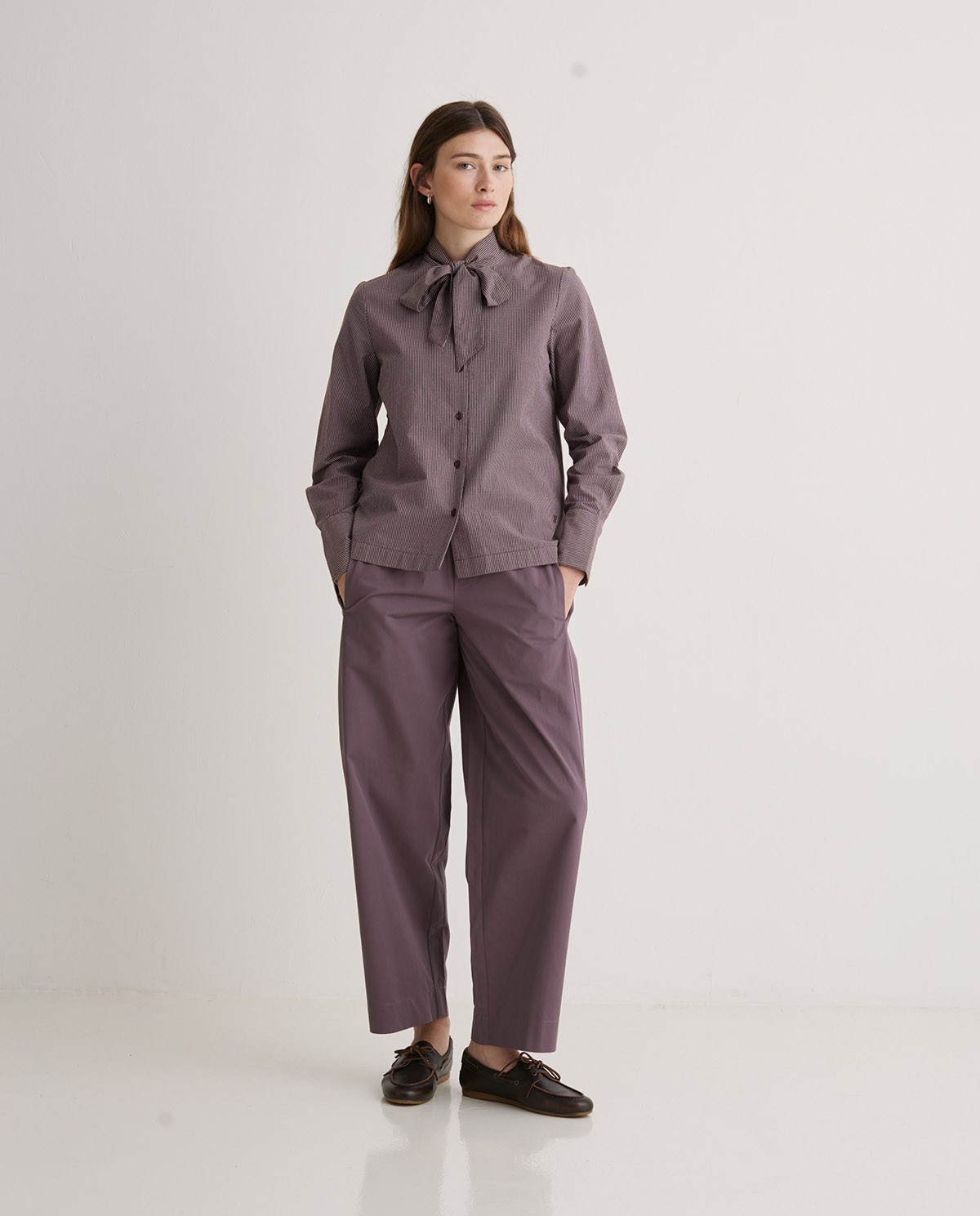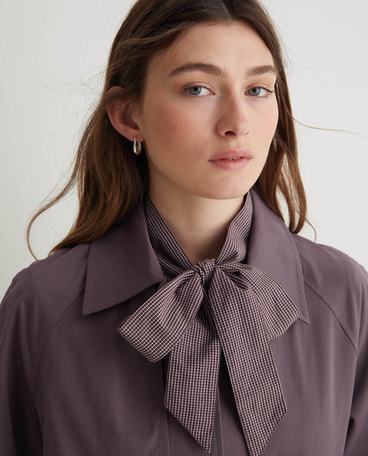 Blusa 100% algodón. Fit regular. Estampado de cuadros. Cuello redondo con lazo anudable. Manga larga. Puños abotonados. Cierre con botones. Logo bordado en bajo. Detalle pinza en la espalda.