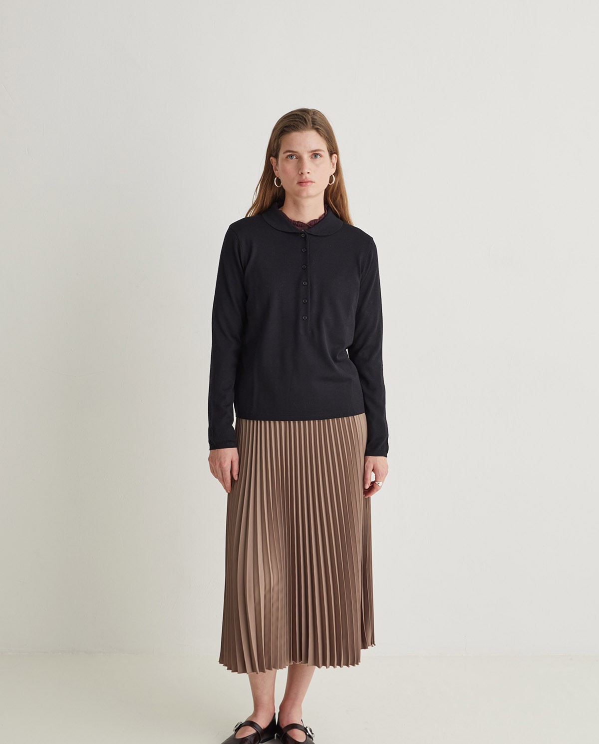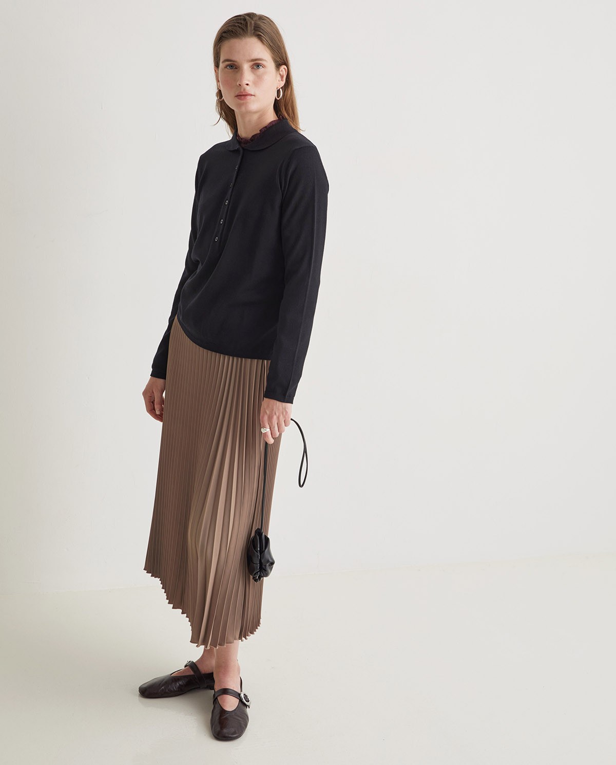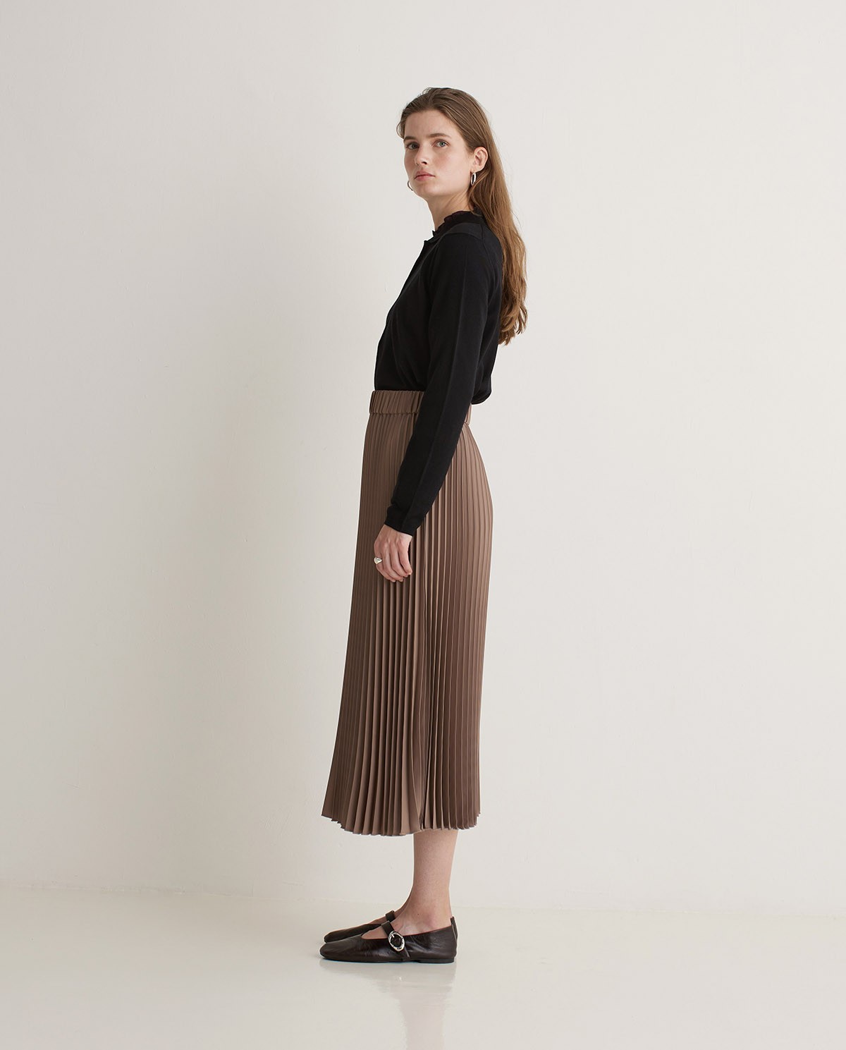 Falda plisada. Diseño fluido. Cintura elástica. Sin cierre.