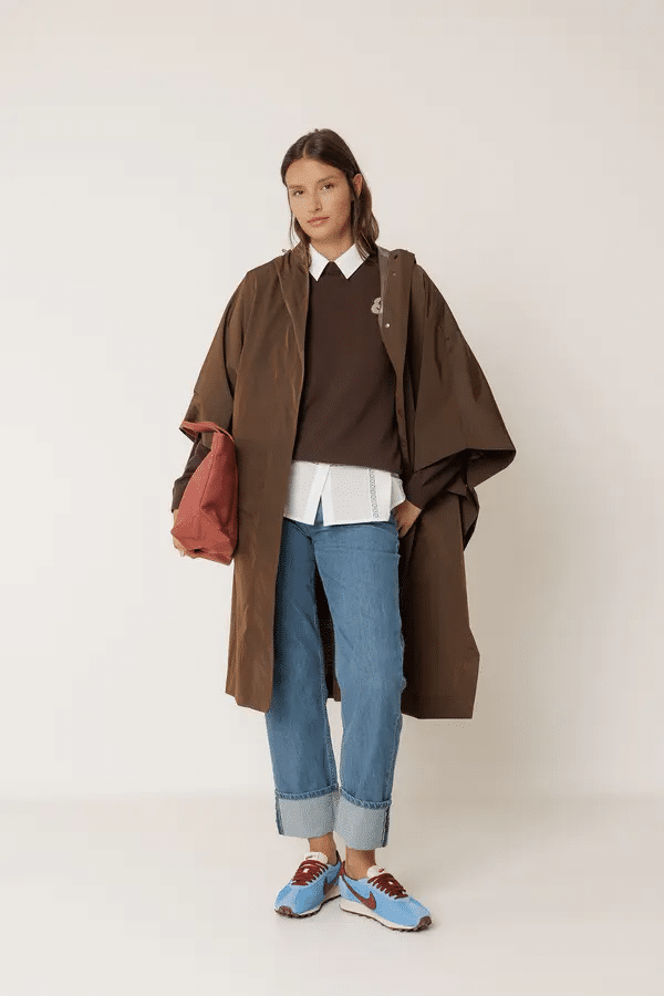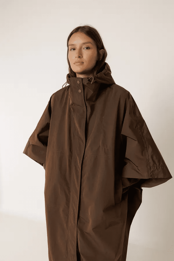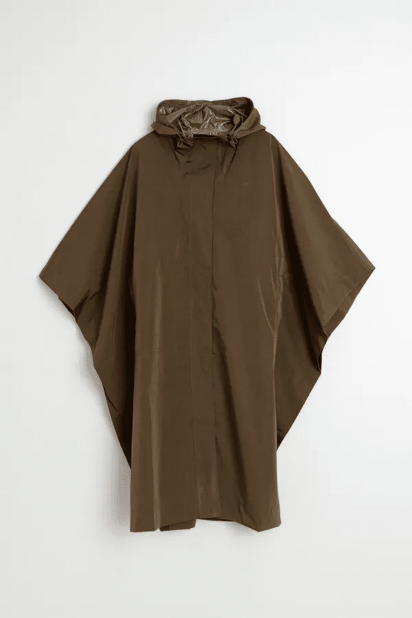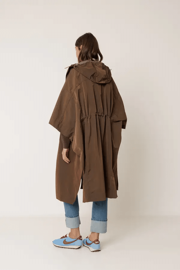 Ligera, amplia y preparada para esos días en los que la lluvia amenaza. Esta capa impermeable se adapta gracias a su goma trasera ajustable y te cubre sin pesar. Cuello alto con capucha, hombros caídos, de construcción amplia tipo capa y con mangas murciélago. Tejido técnico repelente al agua con costuras termoselladas. Fit oversize: Diseñado con un  fit más grande del habitual.
