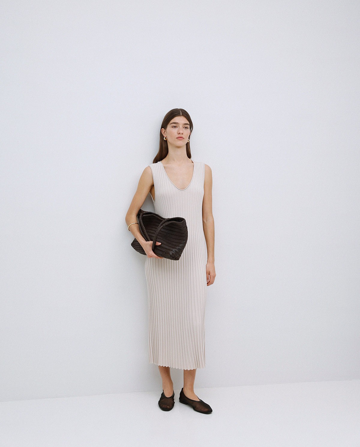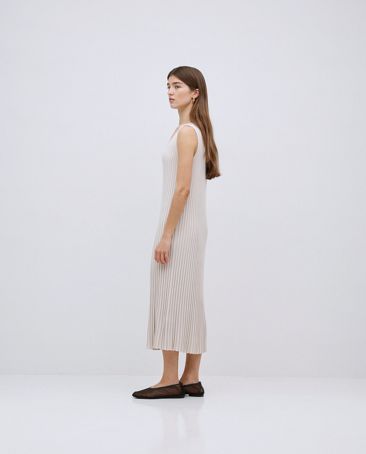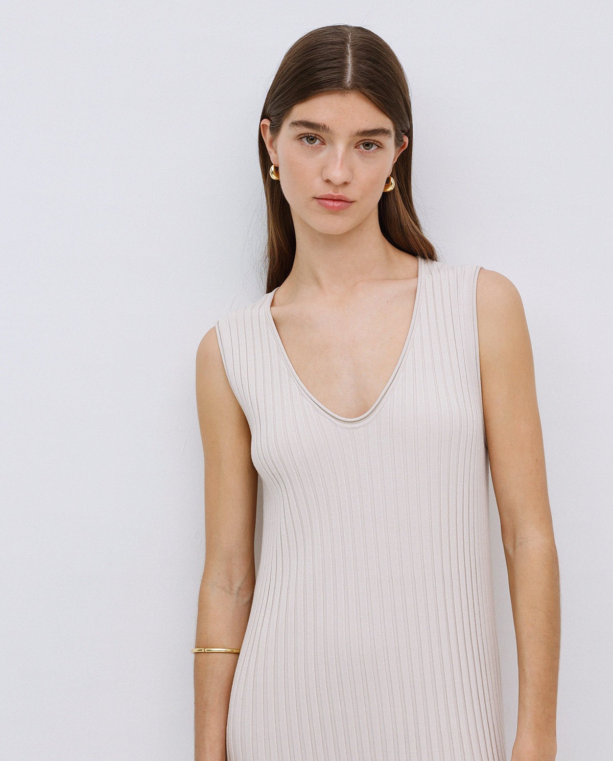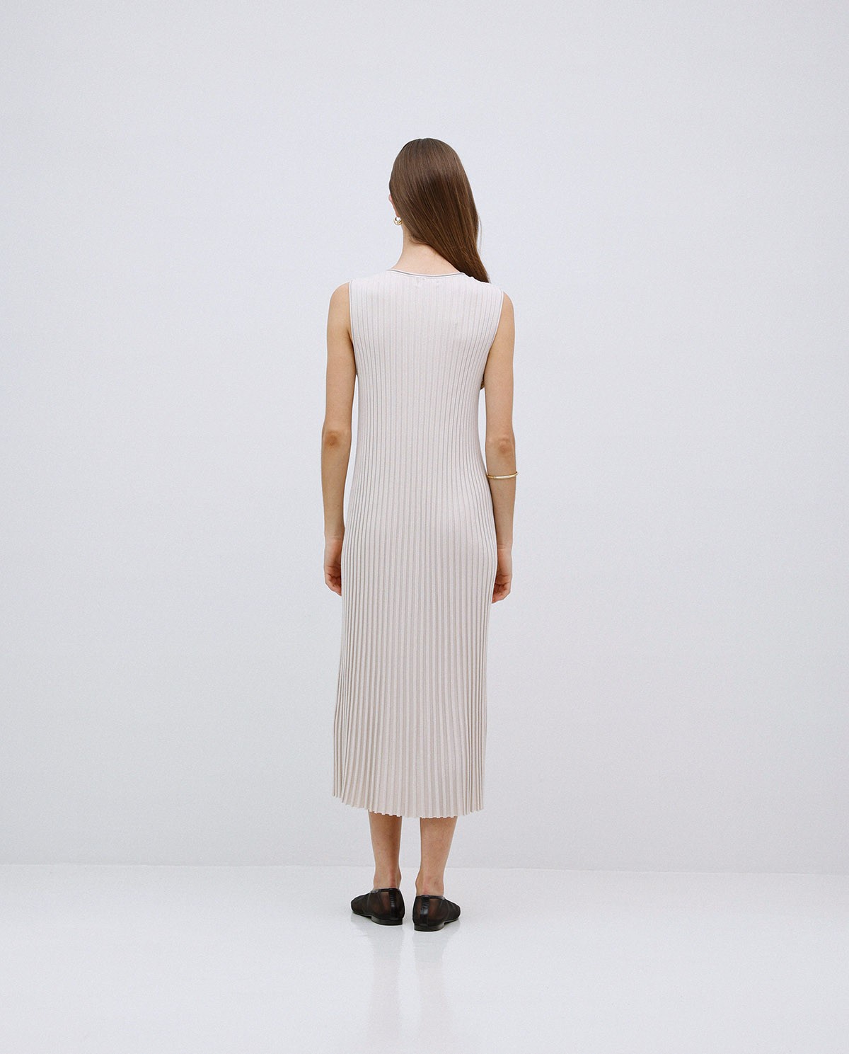 VESTIDO LARGO TIRANTES EVASÉ. TEJIDO MEZCLA DE VISCOSA. CUELLO PICO. SIN MANGAS. EFECTO PLISADO. CORTE RECTO.