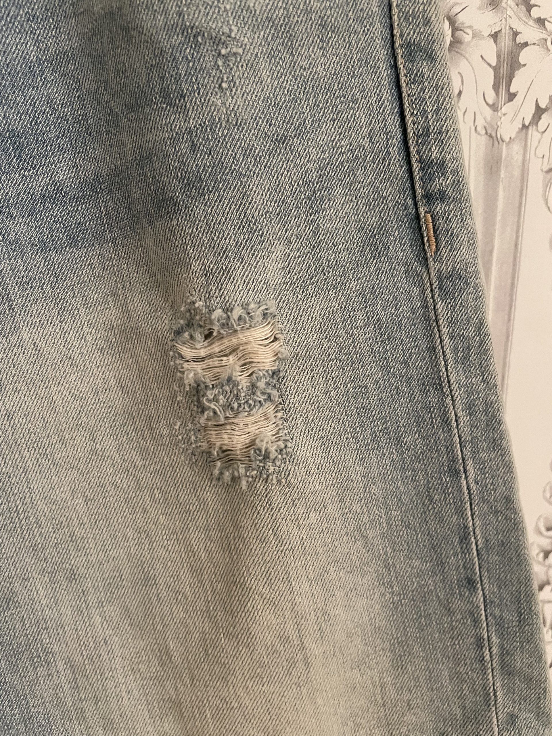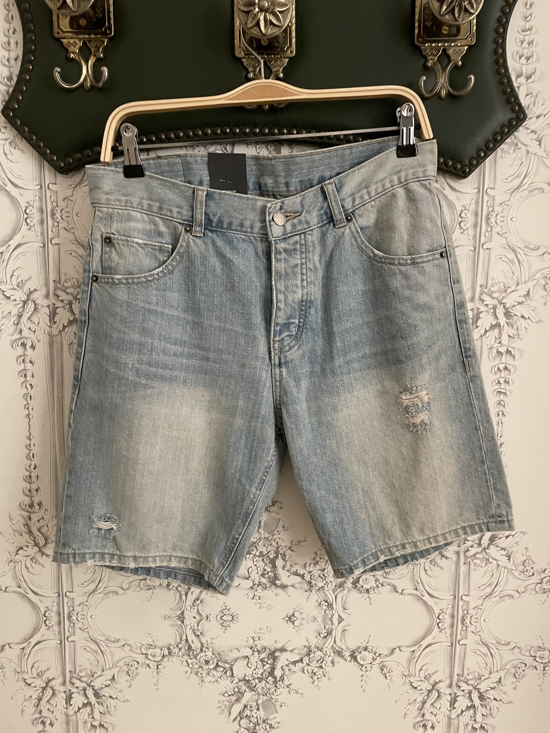 PANTALÓN CORTO VAQUERO FIT REGULAR. DETALLES DESGASTADOS EN PIERNA Y BOLSILLO TRASERO.